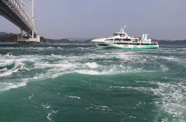 다음 날 아침, 지역 아침 식사 후에는 도쿠시마의 명물인 나루토 해협 소용돌이(鳴門の渦潮)를 관람하는 우즈시오 크루즈(Uzushio Cruise)를 즐깁니다. 특히 사리 조수일 때 가장 큰 소용돌이를 볼 수 있어 인기가 많습니다.