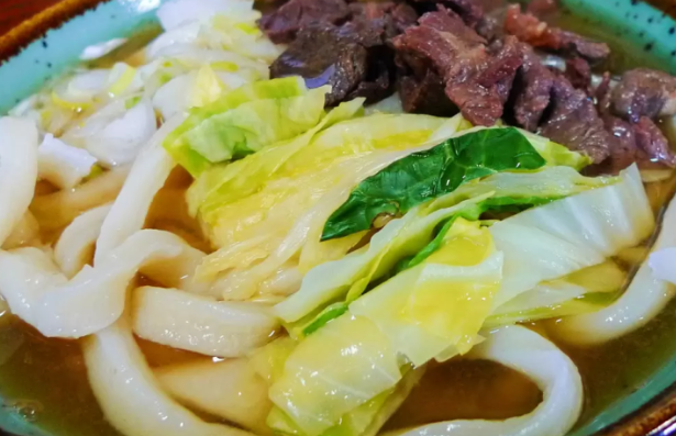 토핑은 달달하고 짭조름하게 조려낸 말고기와 삶은 양배추가 일반적이며, 거친 면발과 어우러져 씹는 맛이 일품입니다. 저렴하면서도 포만감을 주는 한 끼 식사로 현지인에게도 꾸준한 사랑을 받고 있습니다.