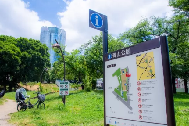 쉐어 그린 바로 북쪽에는 아오야마 공원 북측, 역의 서쪽 방향을 따라 남쪽으로 내려가면 아오야마 공원 남측이 위치해 있습니다.