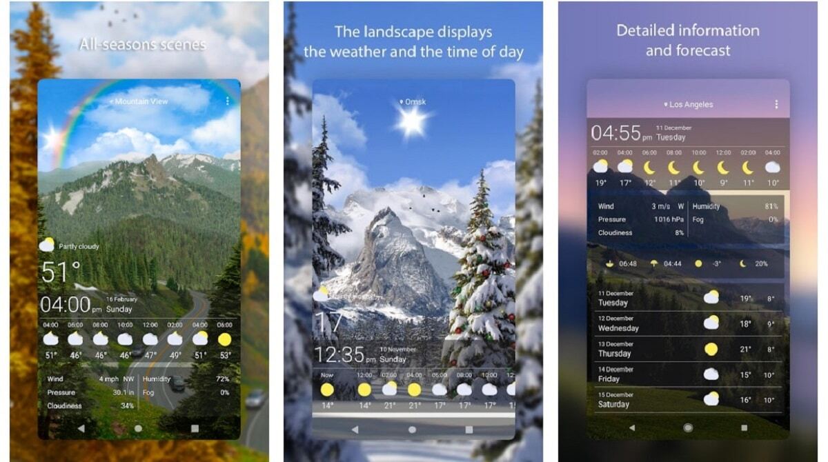 응용 프로그램에서 제공하는 각기 다른 월페이퍼는 강우량, 안개, 눈, 빛의 변화 등을 동적으로 보여줍니다. 또한 이 응용 프로그램은 일기 예보도 알려주므로 2-in-1 응용 프로그램이 있습니다.