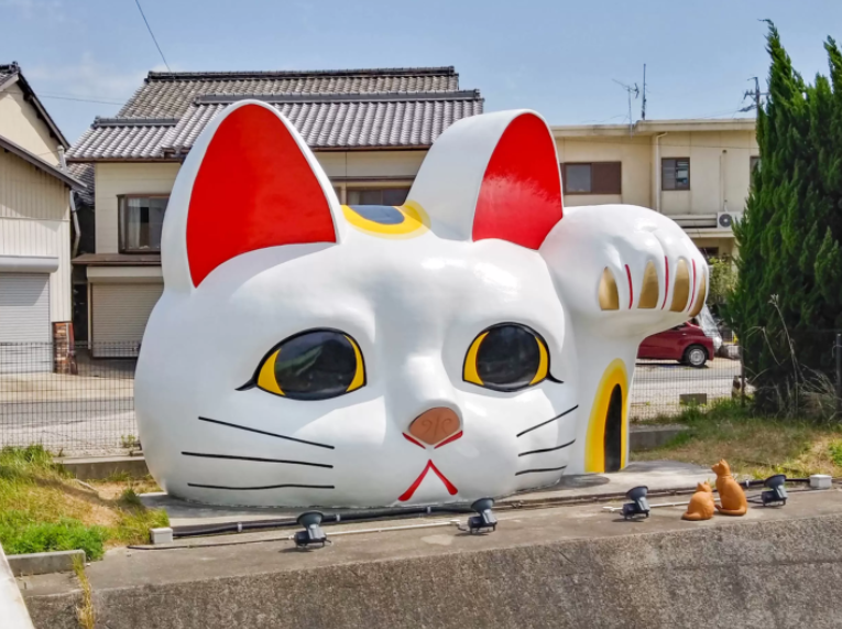 도코나메시가 '마네키네코의 도시'로 불린다는 사실을 알고 계신가요? 이곳은 일본 내 마네키네코 생산량 1위를 자랑하는 도시입니다. 시내 곳곳에는 다양한 크기의 마네키네코가 배치되어 있으며, 그 중에서도 가장 유명한 것은 높이 3.8m, 폭 6.3m의 거대한 마네키네코 '도코냥'입니다.