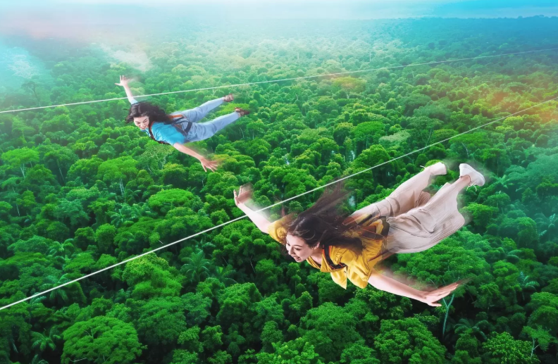 정글 익스트림(JUNGLE EXTREMES)의 일부인 스카이 피닉스는 방문객들의 신체 능력에 도전합니다.