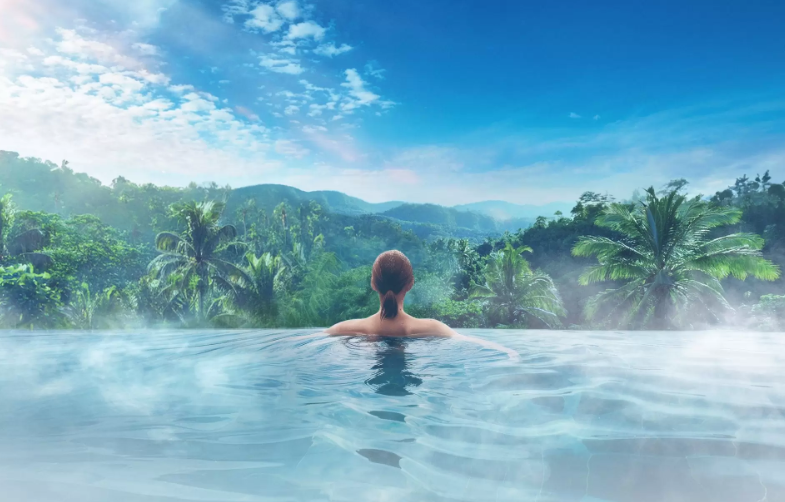 스파 정글리아는 세계에서 가장 큰 인피니티 욕조 중 하나를 자랑하며, 바람과 새소리 속에서 자연과 연결되는 고요한 체험을 제공합니다.