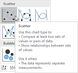 산점도 ( XY 차트 )를 사용하여 과학적 XY 데이터를 표시합니다. 산점도는 종종 변수 X와 Y 사이에 관계가 있는지 확인하는 데 사용됩니다.