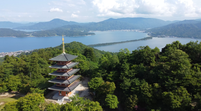 아마노하시다테는 일본 3대 절경 중 하나로, '하늘로 이어지는 다리'라는 의미를 가지고 있습니다. 이 독특한 지형은 수천 년에 걸쳐 자연이 만들어낸 걸작으로, 길이 약 3.6km의 모래톱이 바다 위에 소나무와 함께 자연스럽게 형성되어 있습니다. 성리사에서 내려다보는 아마노하시다테의 전경은 특히 유명하며, 이곳에서 바라보는 풍경은 '비천교'라고 불립니다.
