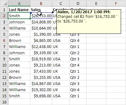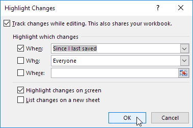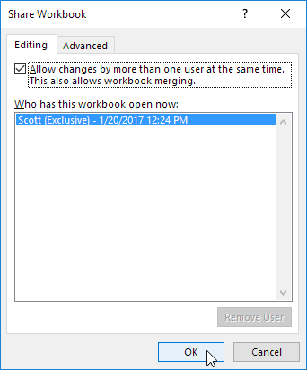 Excel 2016 또는 이전 버전에서 통합 문서를 공유 하는 경우 동일한 통합 문서에서 다른 사람들과 동시에 작업할 수 있습니다. 통합 문서는 다른 사람이 열 수 있는 네트워크 위치에 저장해야 합니다. 다른 사람들이 변경한 사항을 추적하고 해당 변경 사항을 수락하거나 거부할 수 있습니다.