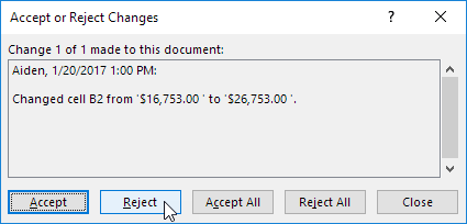 4. 수락을 클릭하여 변경을 수락하거나 거부를 클릭하여 변경을 거부합니다.