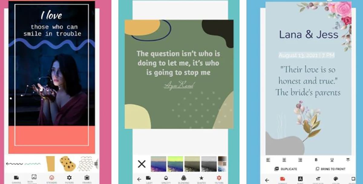 완벽하게 식별하기 위해 이름이 더 간단합니다. 90.000 개 이상의 긍정적 인 리뷰 텍스트 작성에 초점을 맞춘 앱입니다. 결함에 대한 800 개 이상의 글꼴 및 워터 마크 추가없이 완전히 무료; 예, 프리미엄 버전을 거치도록 강요하기 때문에 무료이더라도 행복한 브랜드를 줄 수있는 브랜드를 찾을 것입니다. 그런 다음 작성한 모든 문자를 이미지에 배치하여 내보내고 공유 할 수 있습니다. 목록에서 최고 중 하나입니다.